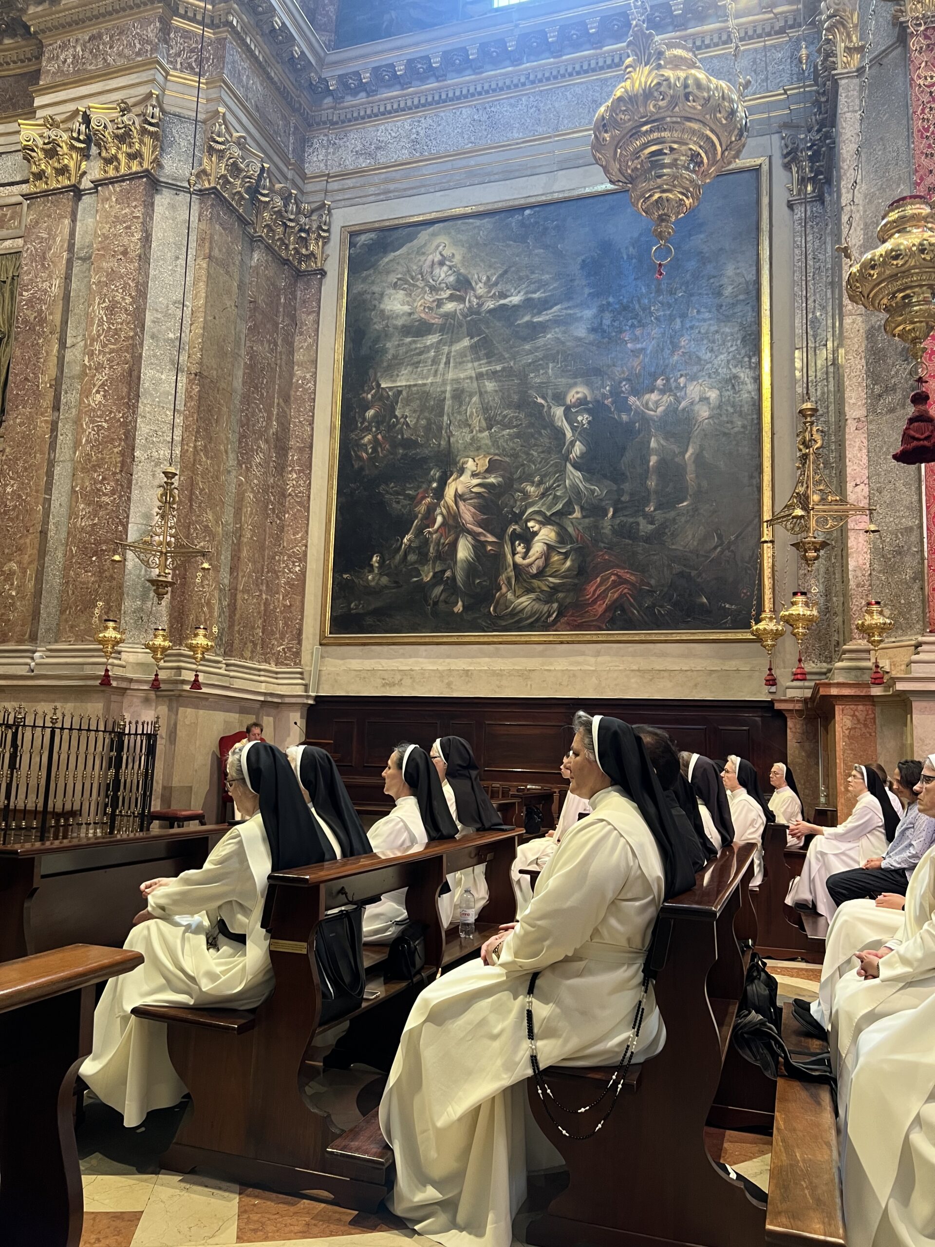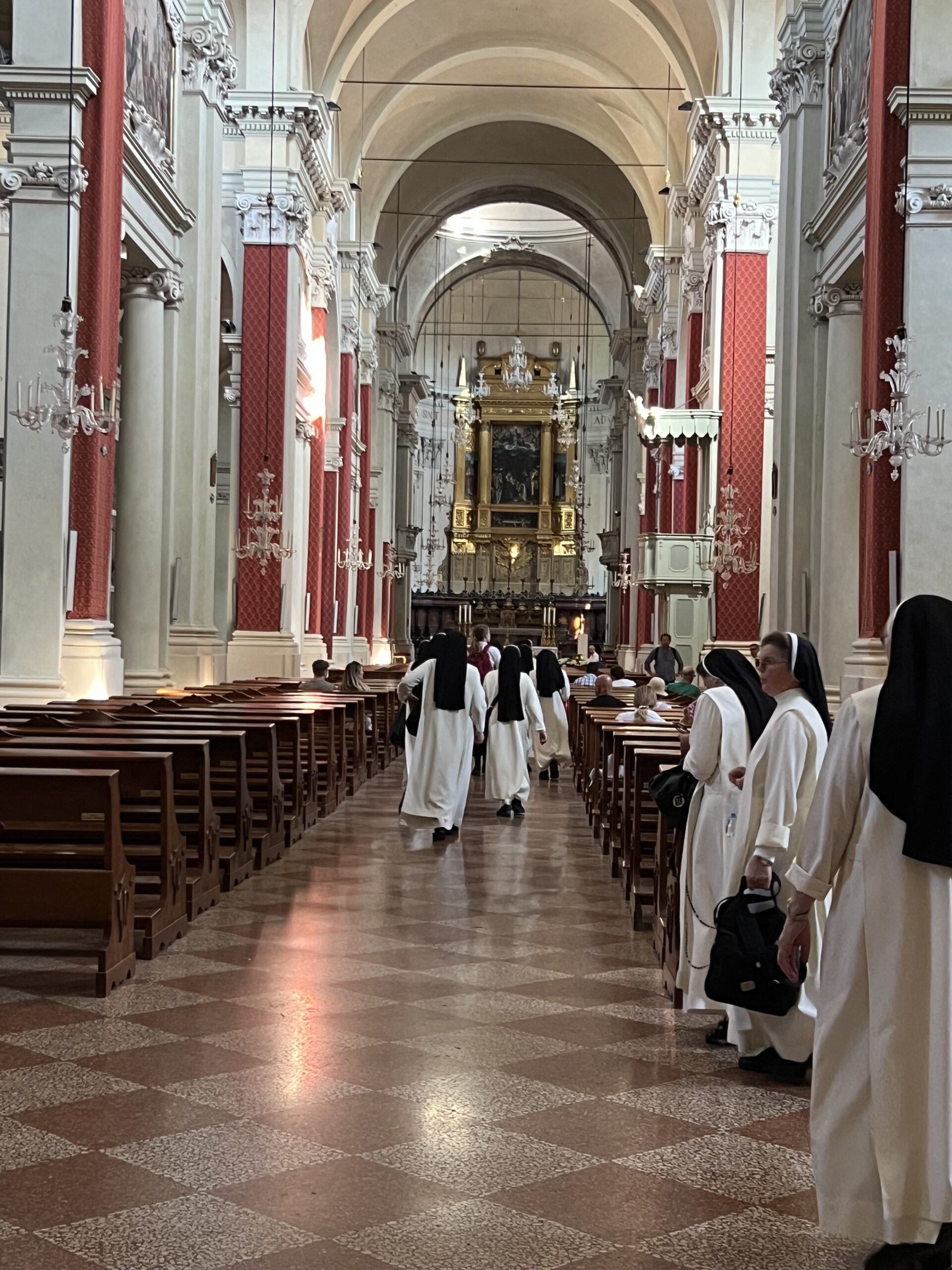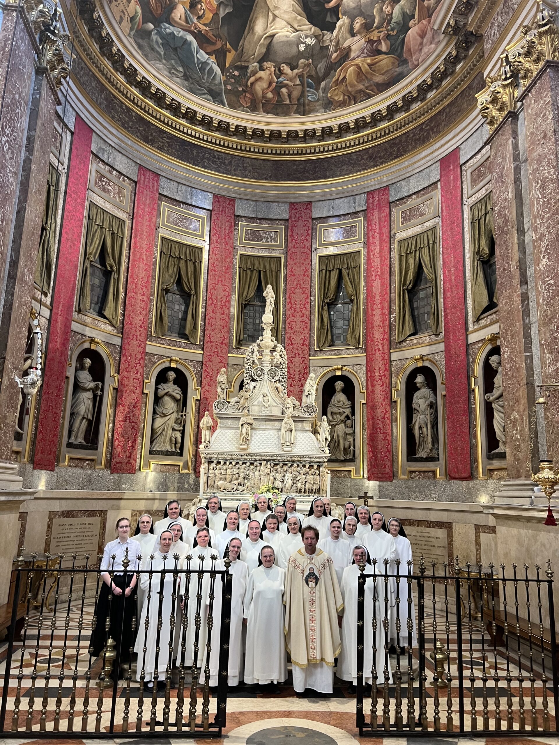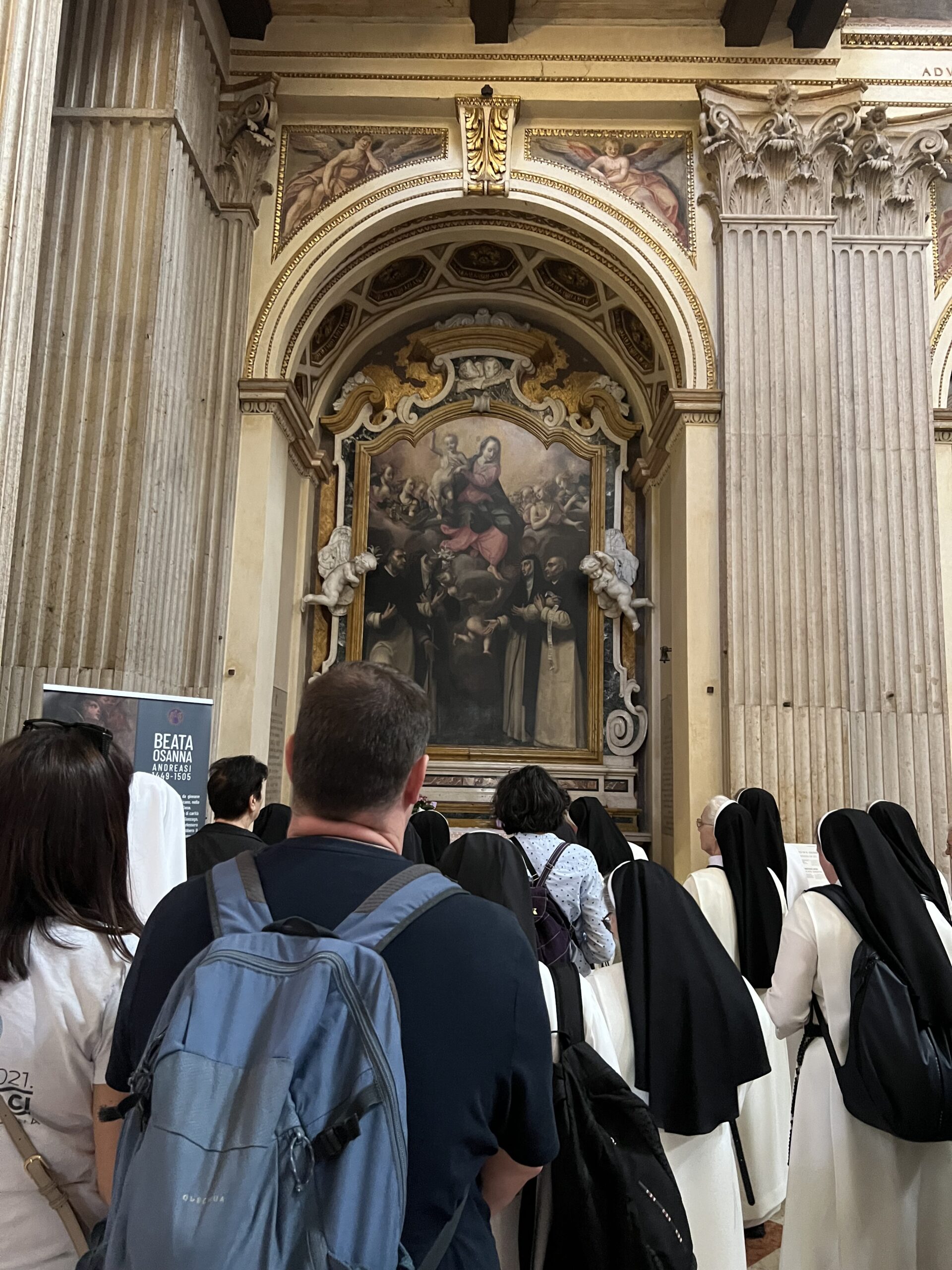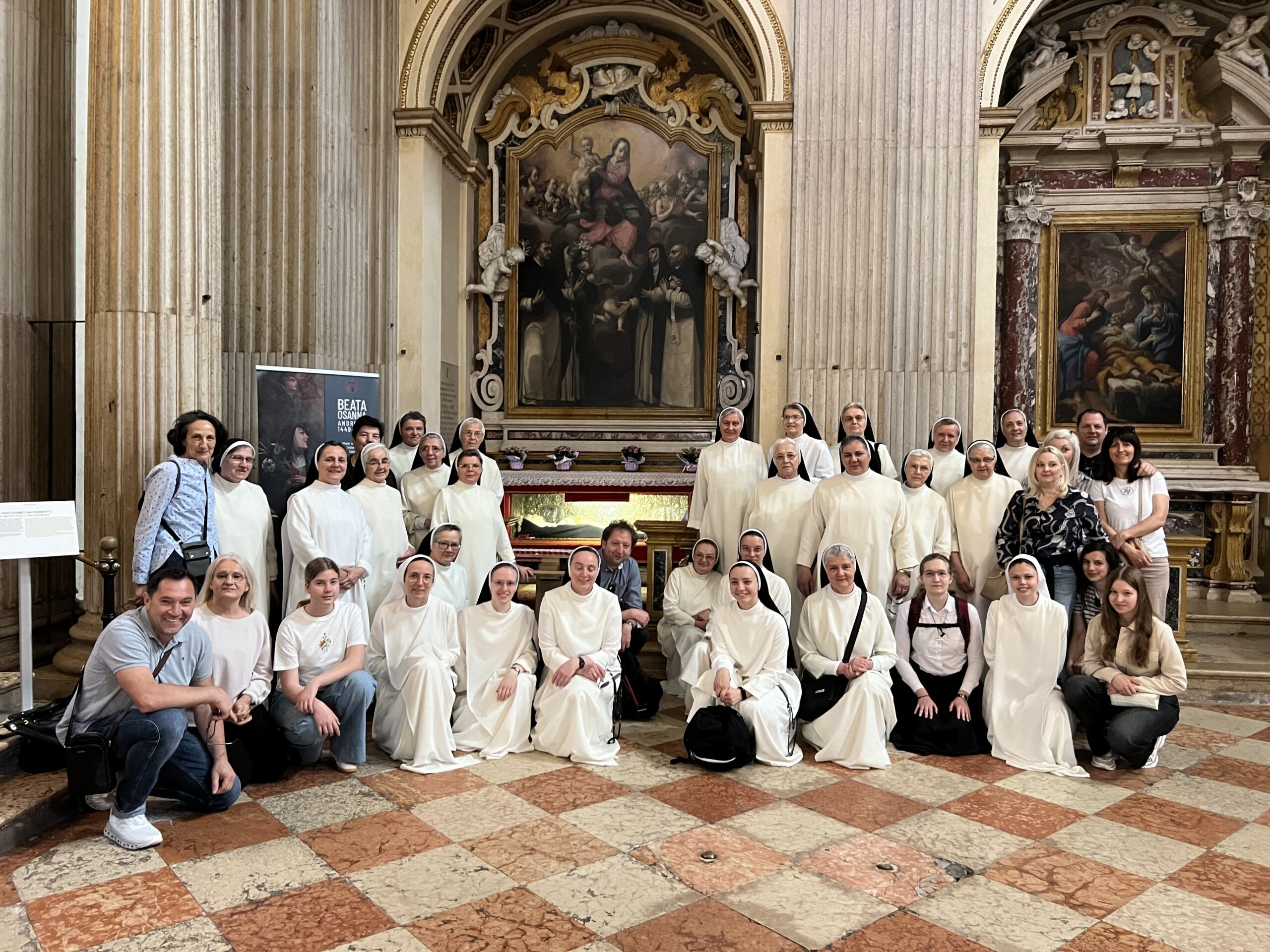 Rano ujutro, iza doručka sestre hodočasnice, dominikanski trećoredci, p. Jozo Čirko i naša dva vozača uputili su iz Verone prema Mantovi, gradu blažene Ozane Andreasi (15. stoljeće), dominikanske mističarke. U katedrali sv. Petra apostola posjetili su njezino neraspadnuto tijelo, pomolili se zajedno na njenom grobu i zapjevali pjesmu njoj u čast. Hodočasnici su imali vremena razgledati katedralu i ostati u molitvi. Bilo je slobodnog vremena za posjetiti ostale znamenitosti ovog grada velike kulturne baštine. Budući da je 1. svibanj neradni dan i u Italiji, rodna kuća bl. Ozane bila je zatvorena, ali zato su sestre i laici mogli posjetiti baziliku sv. Andrije i ostale crkvice i muzeje u gradu. Nakon Mantove uputili su se prema Bologni. Ušli su u baziliku sv. Petronija, crkvu koja je zamišljena, u ono vrijeme gradnje, biti najvećom crkvom na svijetu, većom i od sv. Petra u Vatikanu, ali nikada nije dovršena s tim ciljem. Novicijat je posjetio tijelo bl. Imelde Lambertini. Nakon slobodnog vremena i razgledavanja, svi zajedno uputili su se prema bazilici sv. Dominika, našeg Utemeljitelja i velikog svetca za Talijane i brojne hodočasnike. Kada su prispjeli u baziliku, mogli su se tome i osvjedočiti.